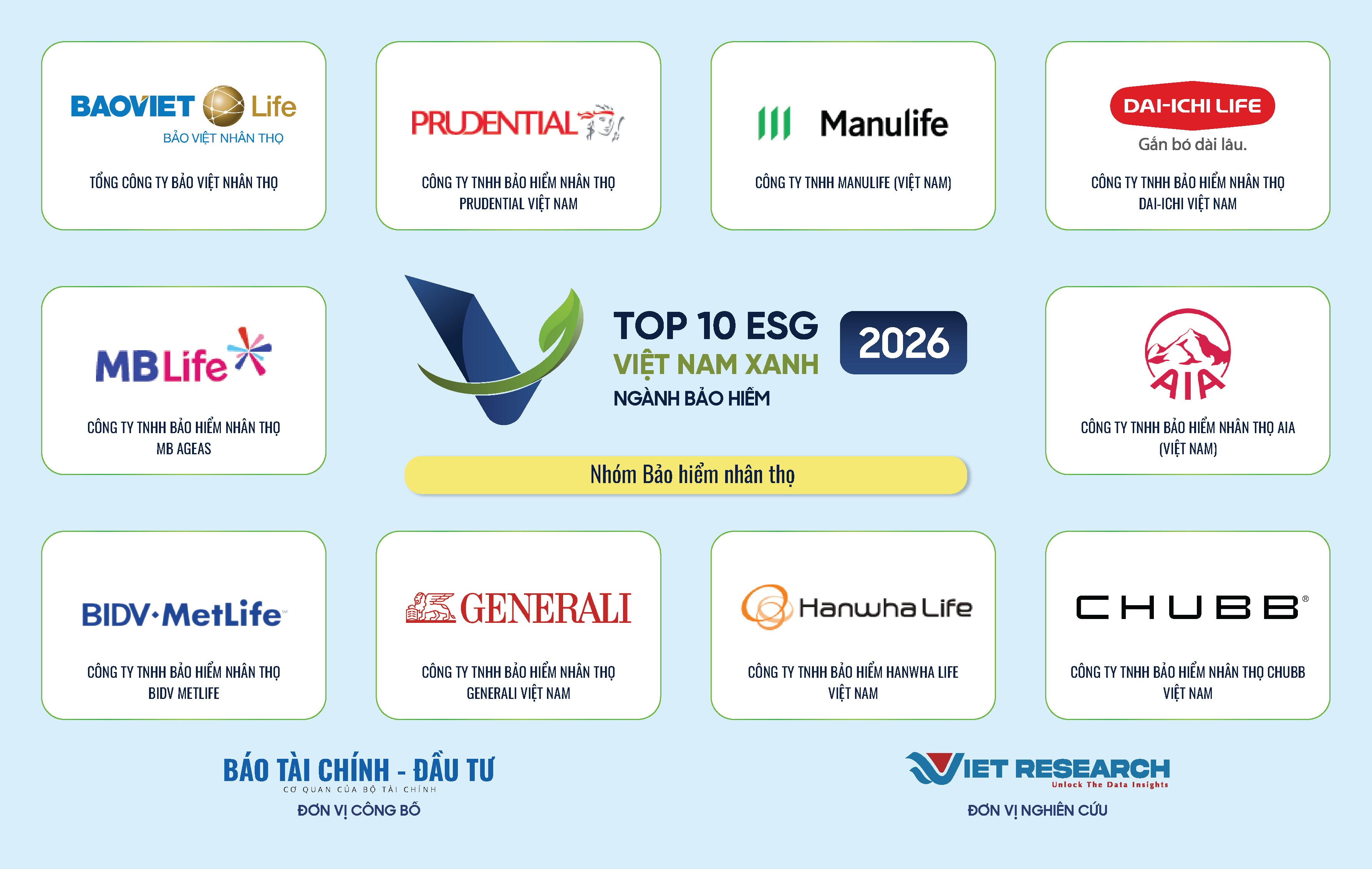 CÔNG BỐ TOP 10 DOANH NGHIỆP ESG VIỆT NAM XANH 2026 – NGÀNH BẢO HIỂM Trong khuôn khổ Chương trình Nghiên cứu và vinh danh về việc cam kết và thực hiện ESG trong các ngành kinh tế chủ lực năm 2026, Viet...