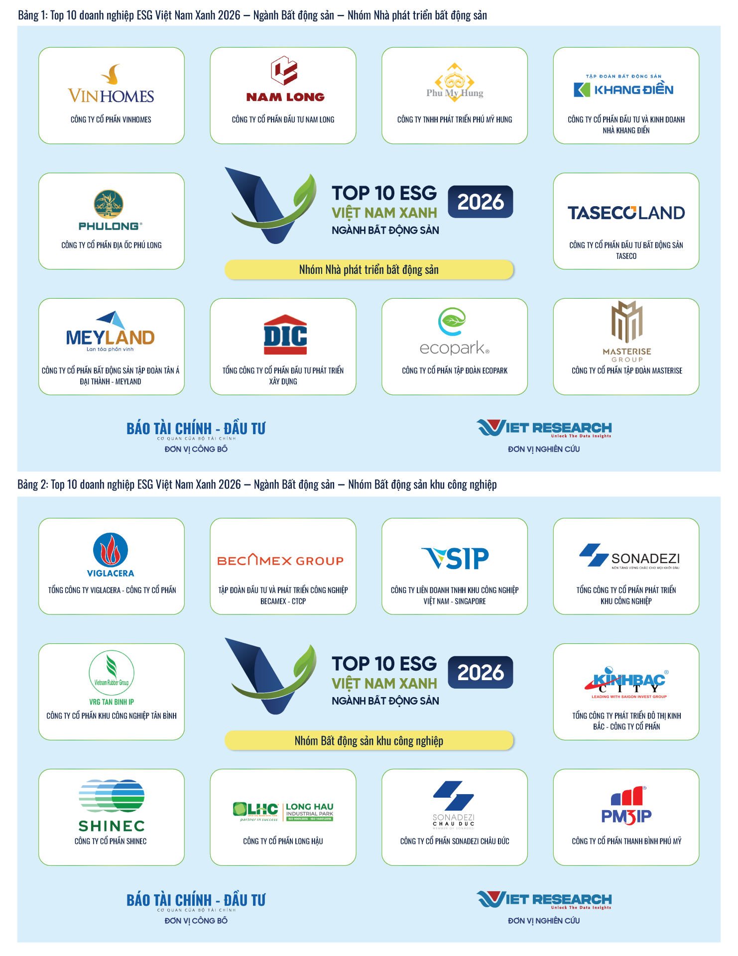 CÔNG BỐ TOP 10 DOANH NGHIỆP ESG VIỆT NAM XANH 2026 – NGÀNH BẤT ĐỘNG SẢN Trong khuôn khổ Chương trình Nghiên cứu và vinh danh về việc cam kết và thực hiện ESG trong các ngành kinh tế chủ lực năm 2026,...