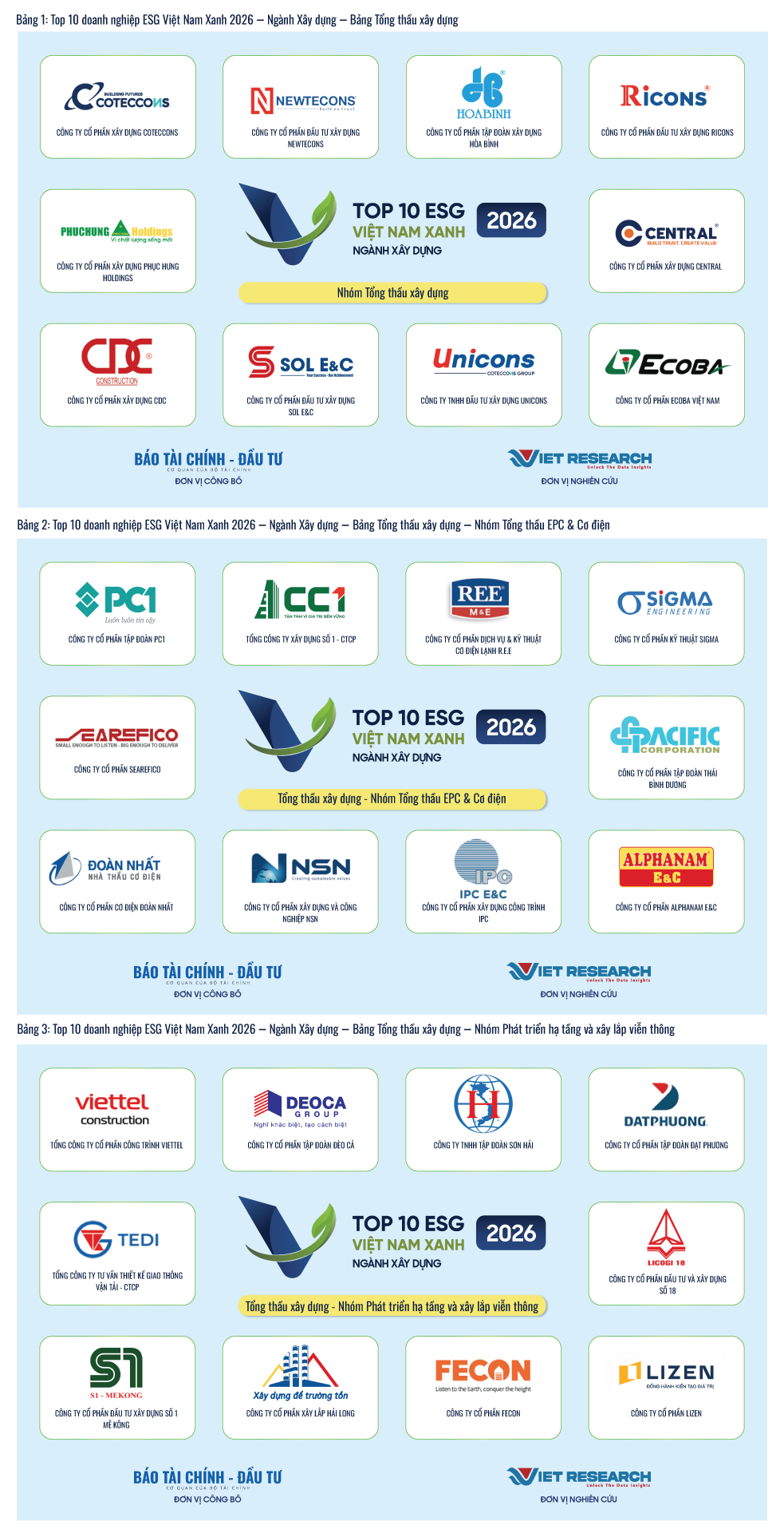 CÔNG BỐ TOP 10 DOANH NGHIỆP ESG VIỆT NAM XANH 2026 – NGÀNH XÂY DỰNG Trong khuôn khổ Chương trình Nghiên cứu về việc cam kết và thực hiện ESG trong các ngành kinh tế chủ lực năm 2026, Viet Research phối hợp...